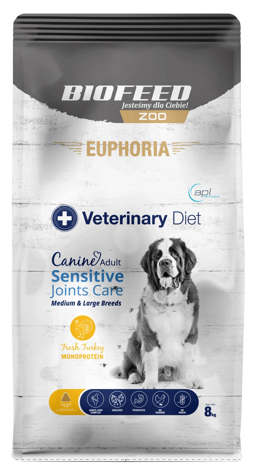 Karma dla psów EUPHORIA Veterinary Diet Canine SENSITIVE JOINTS CARE Indyk Monoprotein (średnie i duże rasy) 8 kg
